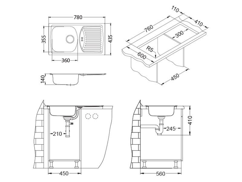 ALVEUS dřez BASIC 150 NEREZ - odtok 31/2"