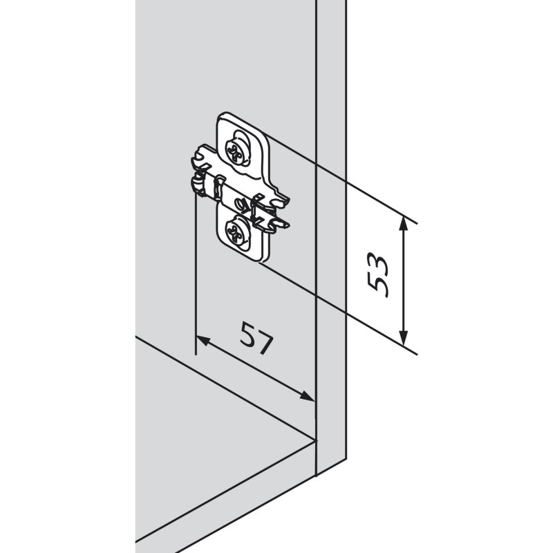 BLUM CLIP podložka křížová 0mm s EUROŠROUBY pro montáž proti sobě v laminu 18mm