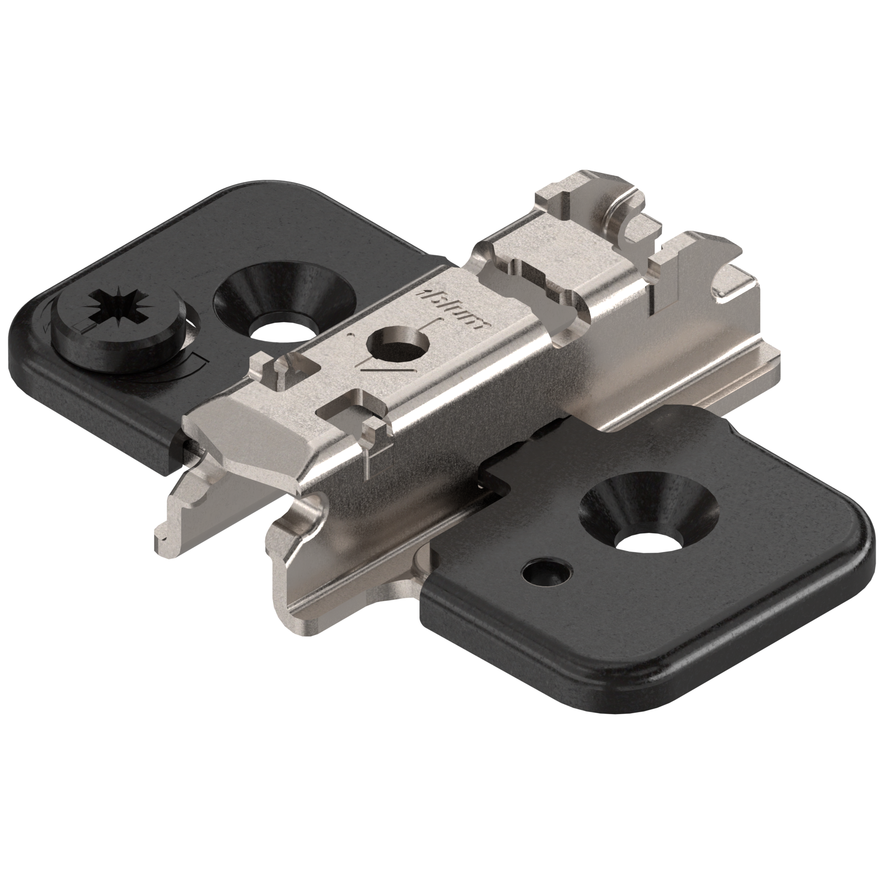 Provedení: křížová montážní podložka Typ: CLIP Výrobní číslo: 173H7130 Výška (mm): 11,5 Způsob montáže: vruty do dřevotřísky o 3,5 mm a 4 mm Zvýšení (mm): 3 Výškové nastavení (mm): +/- 2 Materiál: ocel Povrch: černý Onyx