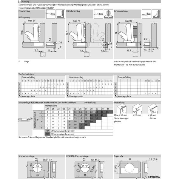 CLIP top BLUMOTION Závěs se širokým úhlem otevření pro nulový přesah 71B7590