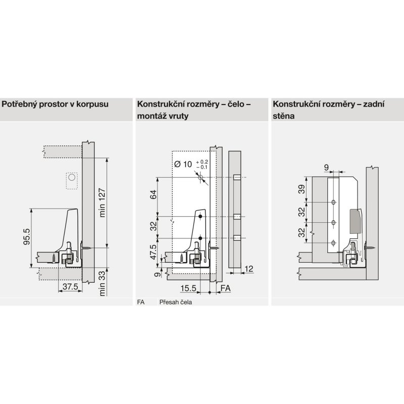 BLUM TANDEMBOX Z30B000S.04 držák zad, výška B, le+pr, ocel šedá