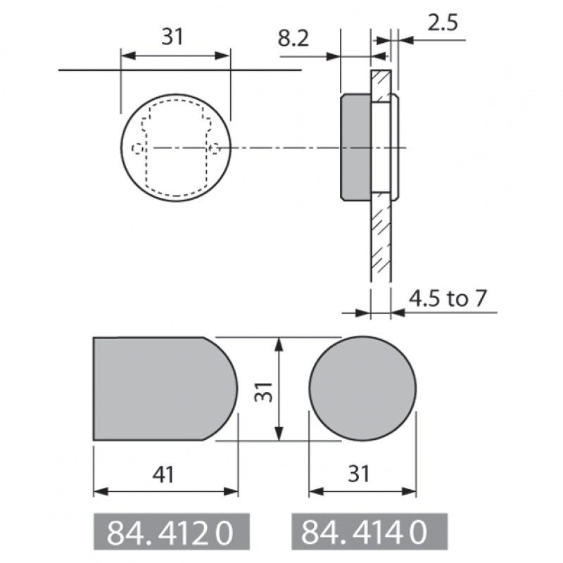 Krytka misky závěsu pro skleněná dvířka 84.4120 Materiál: Plast Barva/povrch: chromovaná Upevnění krytky: Montáž přišroubováním Tvar: D-tvar Délka: 41 mm Šířka: 31 mm Výška: 8.2 mm | ||