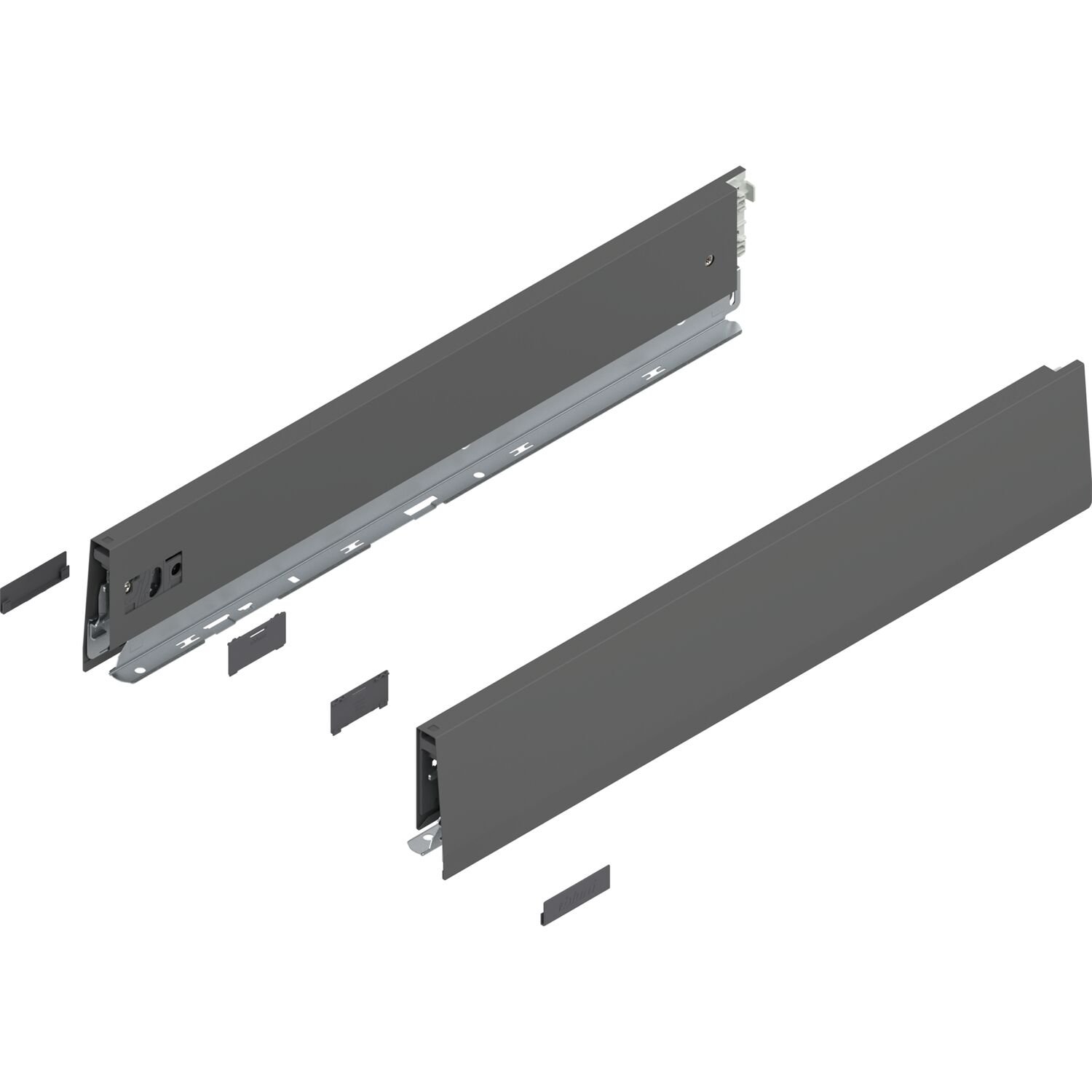 BLUMOTION S - BLUMOTION nebo TIP-ON BLUMOTION integrovaný v korpusové vodicí liště. Připevněním jednotky pro otvírání TIP-ON BLUMOTION se tlumení automaticky přizpůsobí.