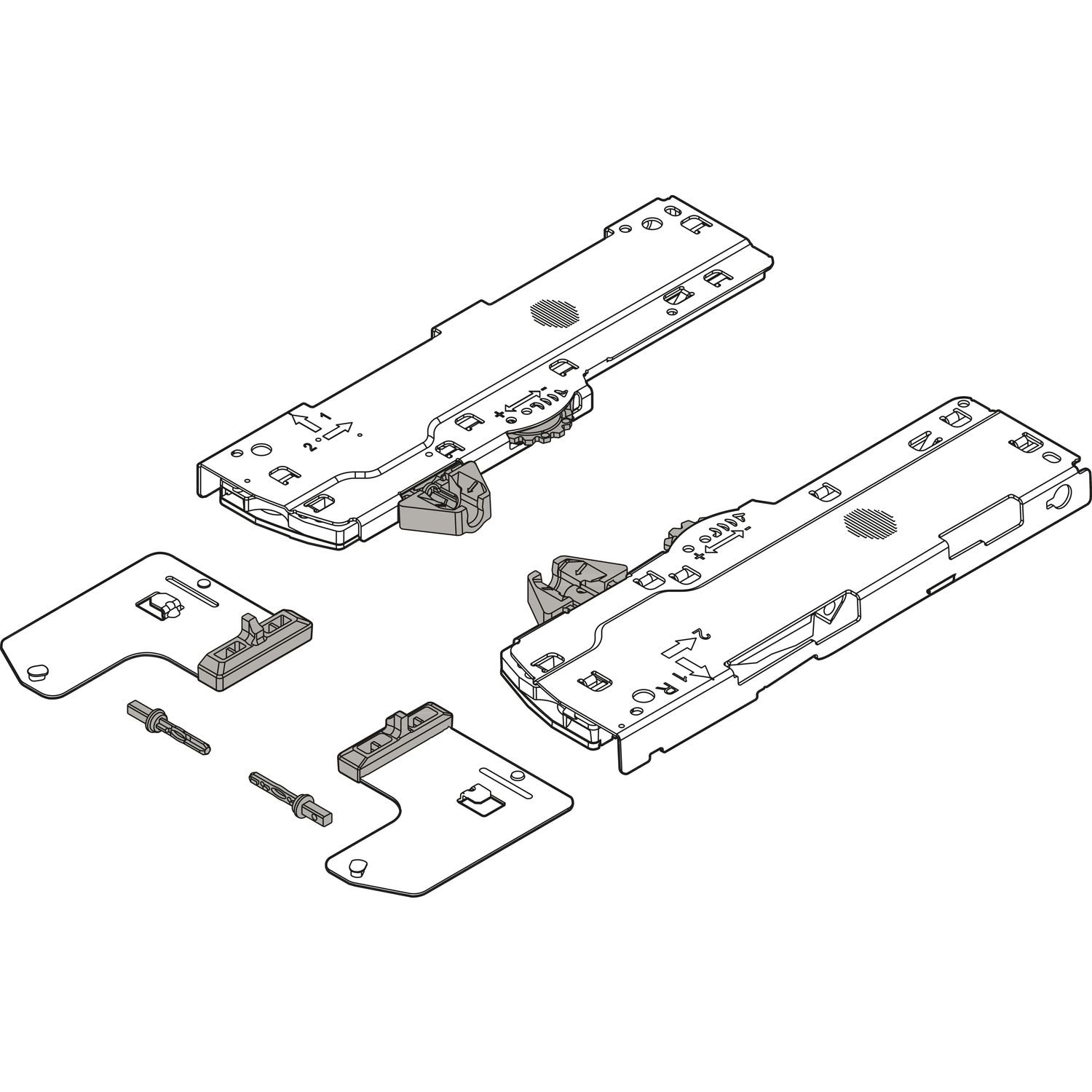 Jednotka TIP-ON BLUMOTION je k dispozici v pěti provedeních, přizpůsobené hmotnostním rozsahům a jmenovitým délkám.