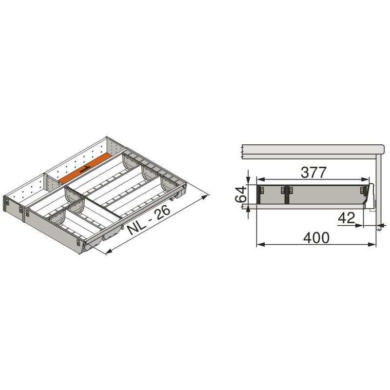 BLUM ORGA-LINE ZSI.500KI4 příborník a rozdělovník, délka 500 mm