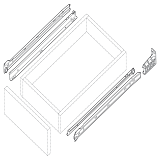 Blum 230M4500 částečný výsuv délka 450 mm, ocel bílá RAL9001 Typ: Standard 230M Výrobní číslo: 230M4500 Provedení: naložená montáž Jmenovitá délka (mm): 450 Dráha výsuvu: částečný výsuv Ztráta výsuvu (mm): 79 Nosnost (kg): 25 Materiál: ocel krémově bílá samozavírací technika BLUMATIC (230M), nebo zadní aretace (230E) aretace výsuvu (od jmenovité délky NL 300 mm) nucené vedení na jedné straně min. světlá hloubka korpusu = jmenovitá délka NL + 3 mm