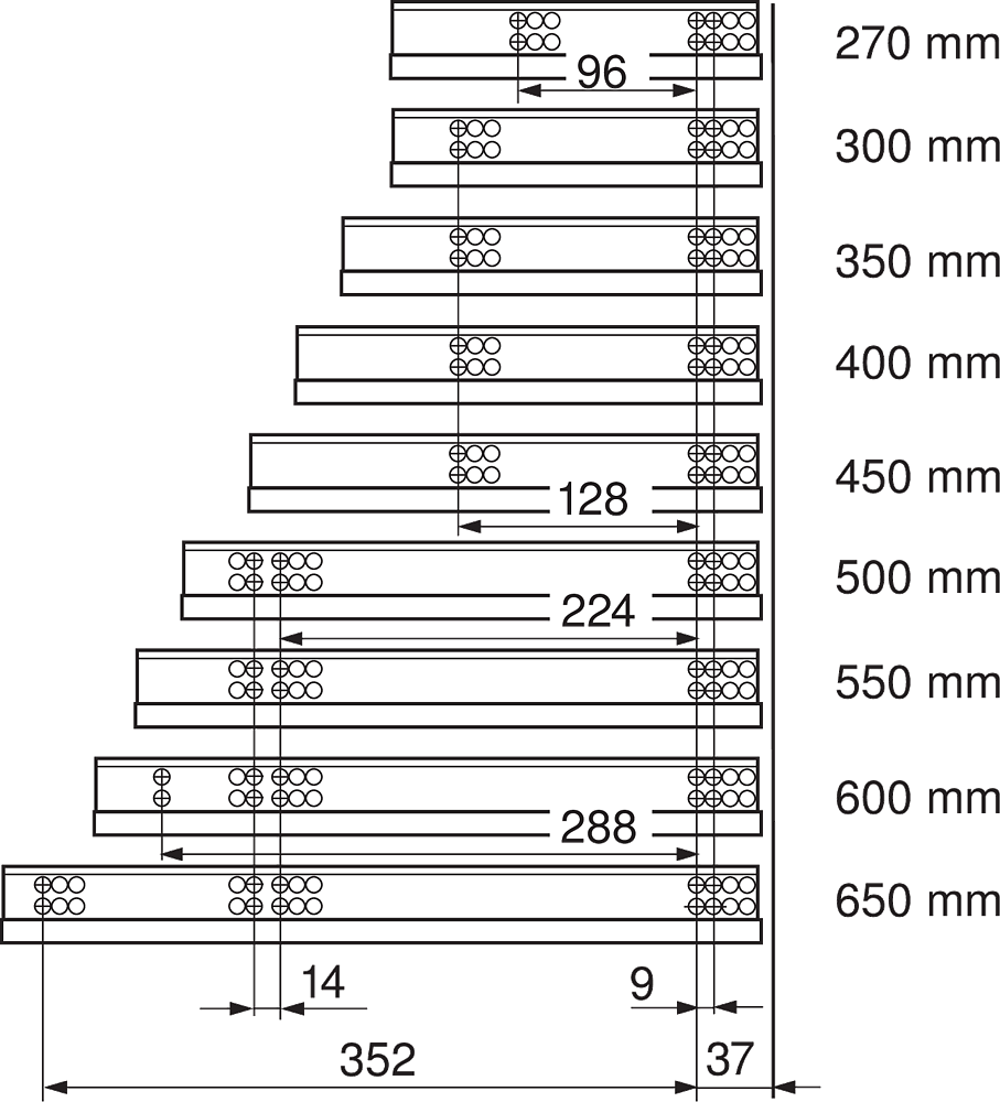 BLUM TANDEM 550H, 550H3000.03, částečný výsuv, délka 300 mm, 30kg Typ: TANDEM 550 H Výrobní číslo: 550H3000.03 Provedení: vhodné pro TIP-ON Jmenovitá délka (mm): 300 Ztráta výsuvu (mm): 78 Nosnost (kg): 30 skrytý částečný výsuv TANDEM s měkkým koncovým dorazem TANDEM inside - pro lehký a plynulý pohyb nastavení výšky bez použití nářadí pomocí spojky vyrovnání tolerancí do stran a do hloubky min. světlá hloubka korpusu = jmenovitá délka NL + 3 mm volitelná synchronizace TIP-ON pro bezpečné spuštění rovněž u širokých čel ocel pozink samodovírací technologie BLUMATIC bez BLUMOTION