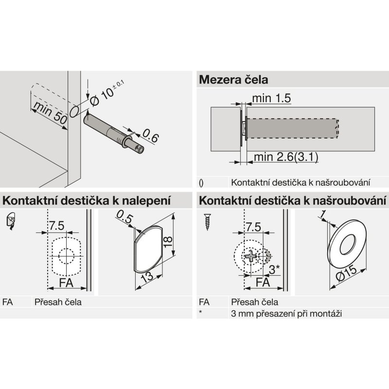 BLUM TIP-ON NEW KRÁTKÝ BÍLÝ s magnetem