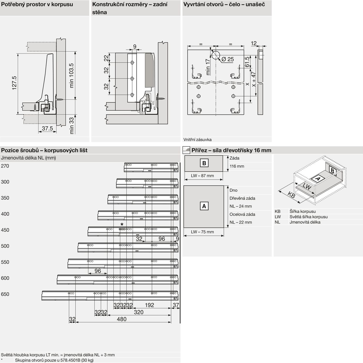 BLUM TANDEMBOX antaro BLUMOTION, sada K, délka 300 mm, 30kg, hedvábně bílá