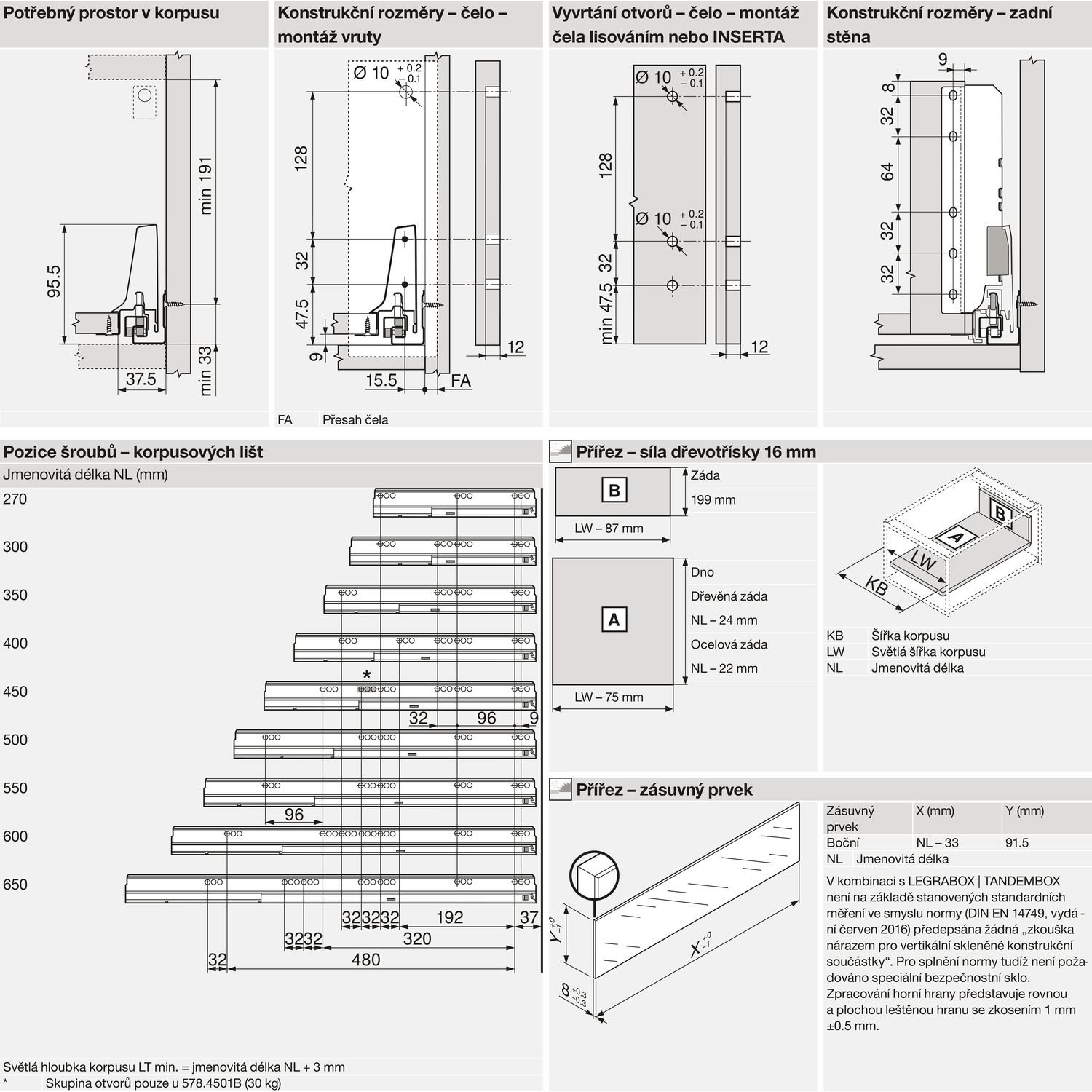 min. světlá hloubka korpusu = jmenovitá délka NL + 3 mm