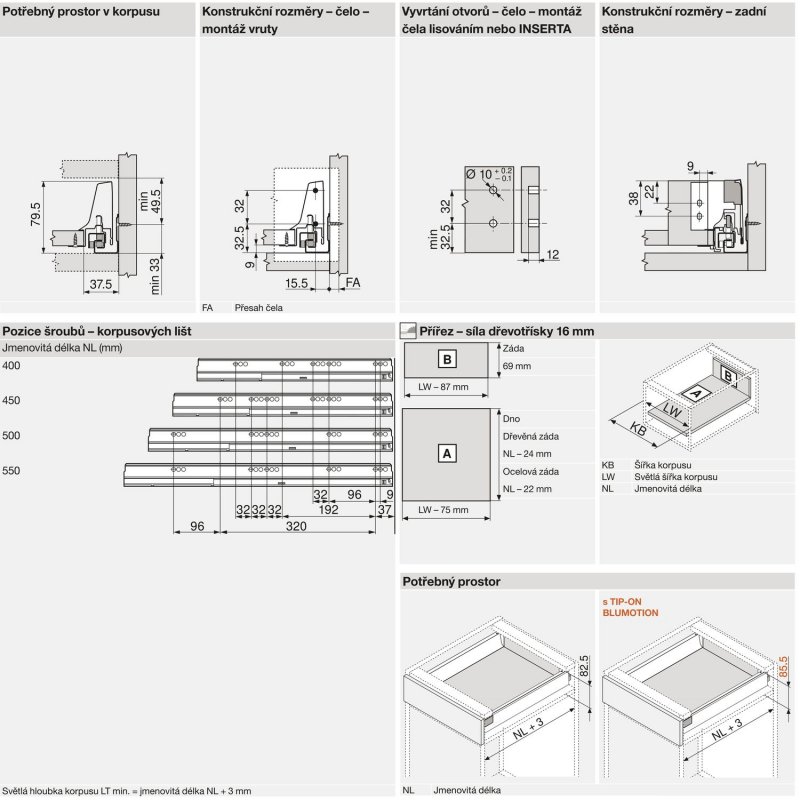 1 sada - korpusové lišty včetně BLUMOTION