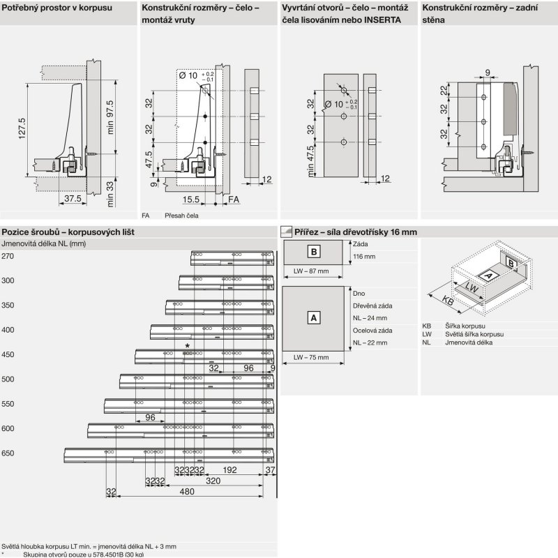 BLUM TANDEMBOX antaro BLUMOTION, sada K, délka 600 mm, 30kg, šedá