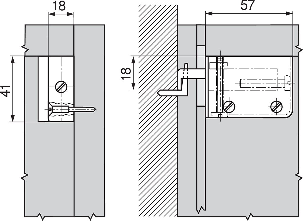 Upevnění závěsného/ seřizovacího kování v korpusu: k našroubování