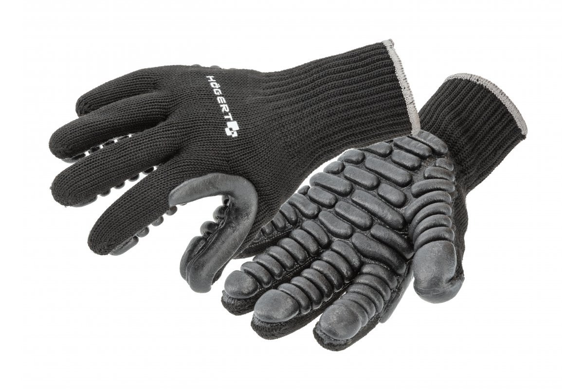 Ochranné rukavice chránící ruce před nebezpečím vyskytujícím se v pracovním prostředí. Vnitřek s gumovými polštářky. Tlumí nárazy při práci, zajišťují vysoký komfort při práci s těžkým nářadím, např. sbíječkami, rázovými klíči, řetězovými pilami atp. Optimální pro náročné uživatele, kteří požadují vysokou kvalitu.