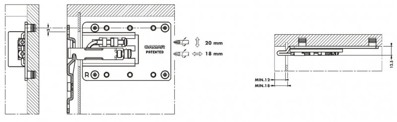 CAMAR retifikační kování 807XL RV pro spodní skříňky strana LEVÁ