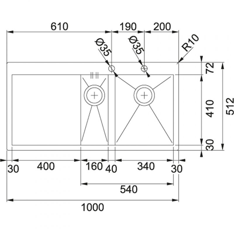 Dřez FRANKE PPX 251/651 TL Nerez odkap vlevo