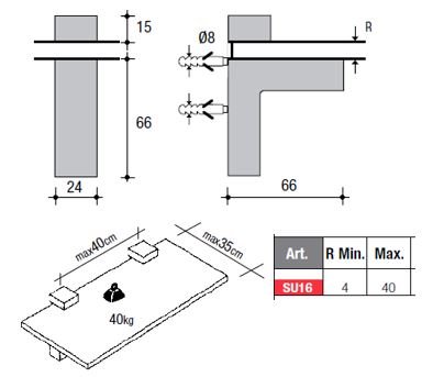 Tukan pro police tloušťky 4 - 40 mm, nosnost 40 kg, povrchová úprava chrom. Vzdálenost police od zdi - 5,3mm.