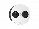 Vrchní krycí část je z nerezové oceli. Po stlačení středu a otočení krytu dojde k odkrytí dvou USB nabijecích portů a jedné zásuvky 230V, naopak při nepoužívání zásuvky ji jednoduše zakryjete a tím pádem neruší design pracovní plochy.