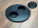Vrchní krycí část je z nerezové oceli. Po stlačení středu a otočení krytu dojde k odkrytí dvou USB nabijecích portů a jedné zásuvky 230V, naopak při nepoužívání zásuvky ji jednoduše zakryjete a tím pádem neruší design pracovní plochy.