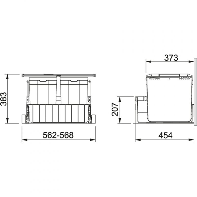 Součástí koše je plnovýsuv s tlumením,které zaručuje tichý dojezd. (Výsuv od firmy GRASS)