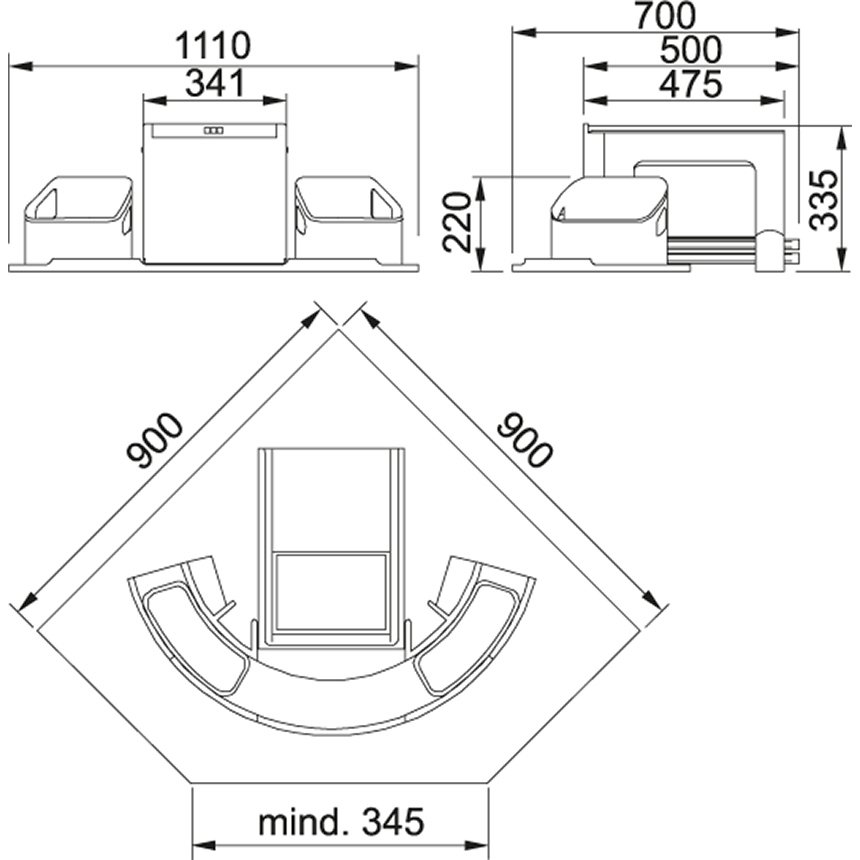 Min. montážní prostor: 1 110 × 700 × 335 mm