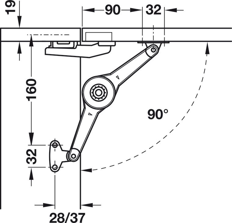 Montáž jako klopna nebo výklop (použijte 2 kování): nastavení ramen (na výšku) přemění klopnu na výklop