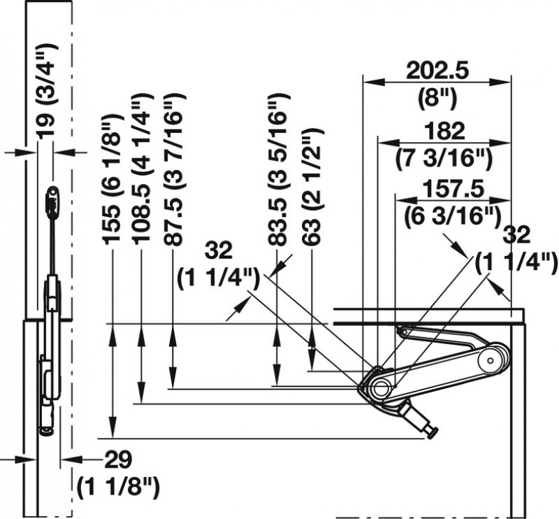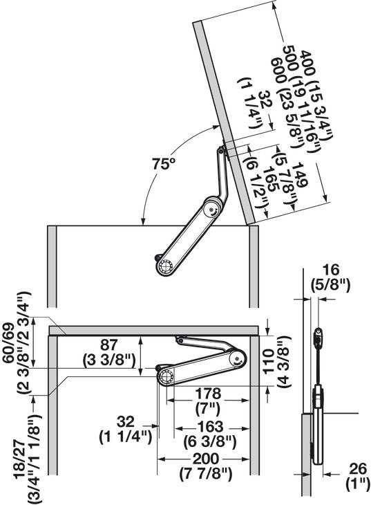 HAFELE Klopna, MAXI UP F -MODRÁ, pro výklopy ze dřeva Al rámeček, h400-600, 6,2kg