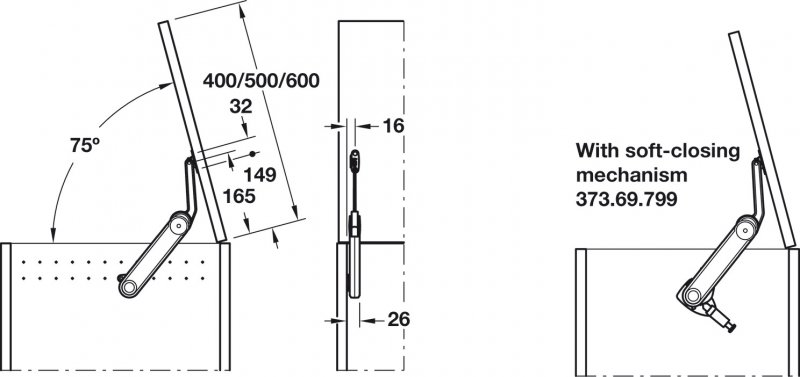 Pro víko je k dispozici mechanismus tlumení (volitelně).