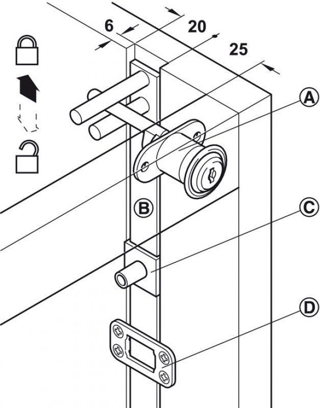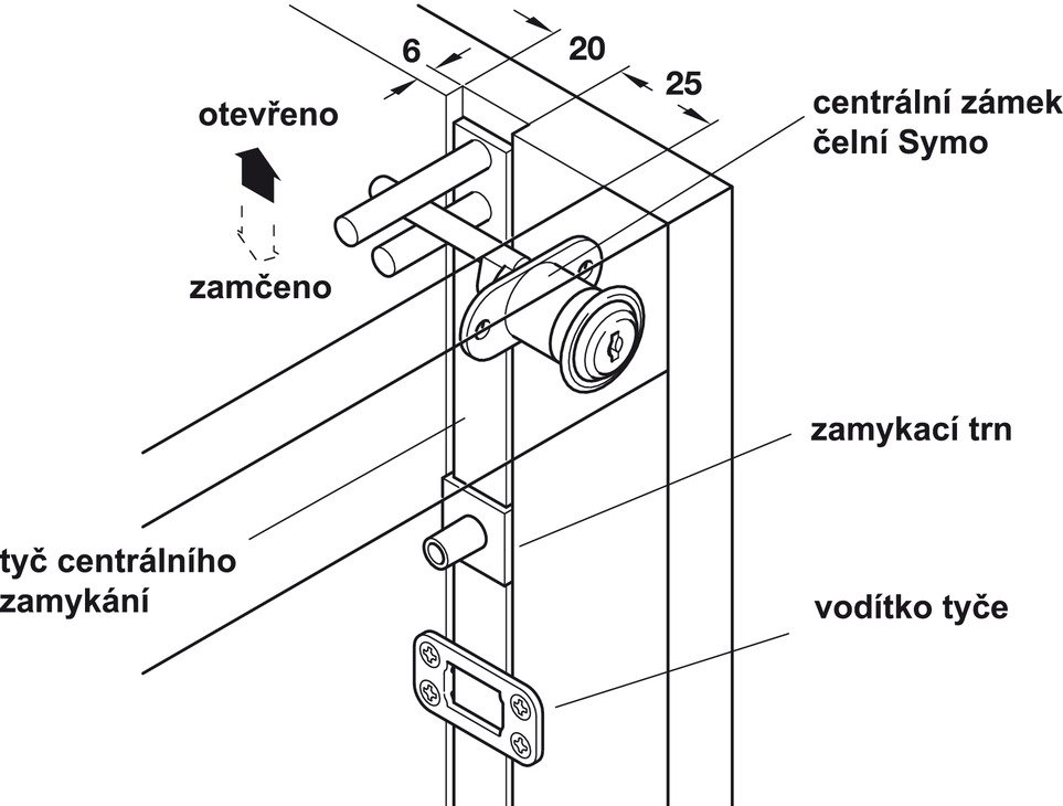 HAFELE SYMO 3000 zámek centrální zdvih 12mm