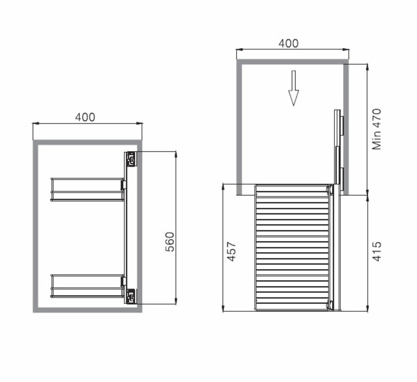 Výsuvný botník boční s tlumeným dovřením, 327x457x560 mm, levý, chrom, hliník