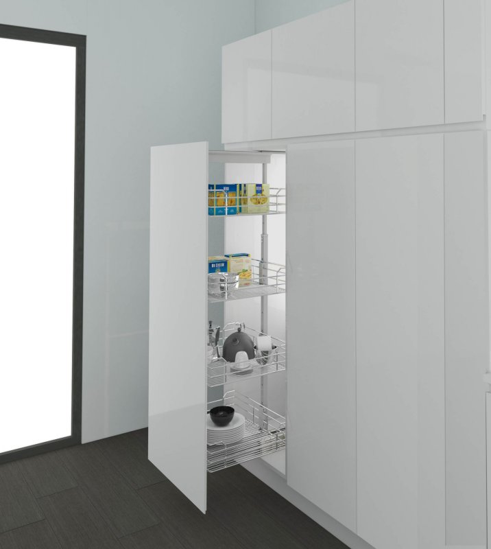 INOXA Potravinová skříň MAXI s dotlumením š.500/1170-1520mm, 3koše, drátěný chrom