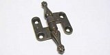 Ozdobný dvoudílný vysazovací závěs, ze slitiny zinku, galvanicky pokovenýpatinou na mědi (pat.) nebo mosazí (Ms), v provedení pravý nebo levý.Rozměry: d.40 š.8 v.70 mm
