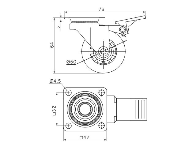 Kolečko nábytkové D35 transparentní s plotničkou a s brzdou