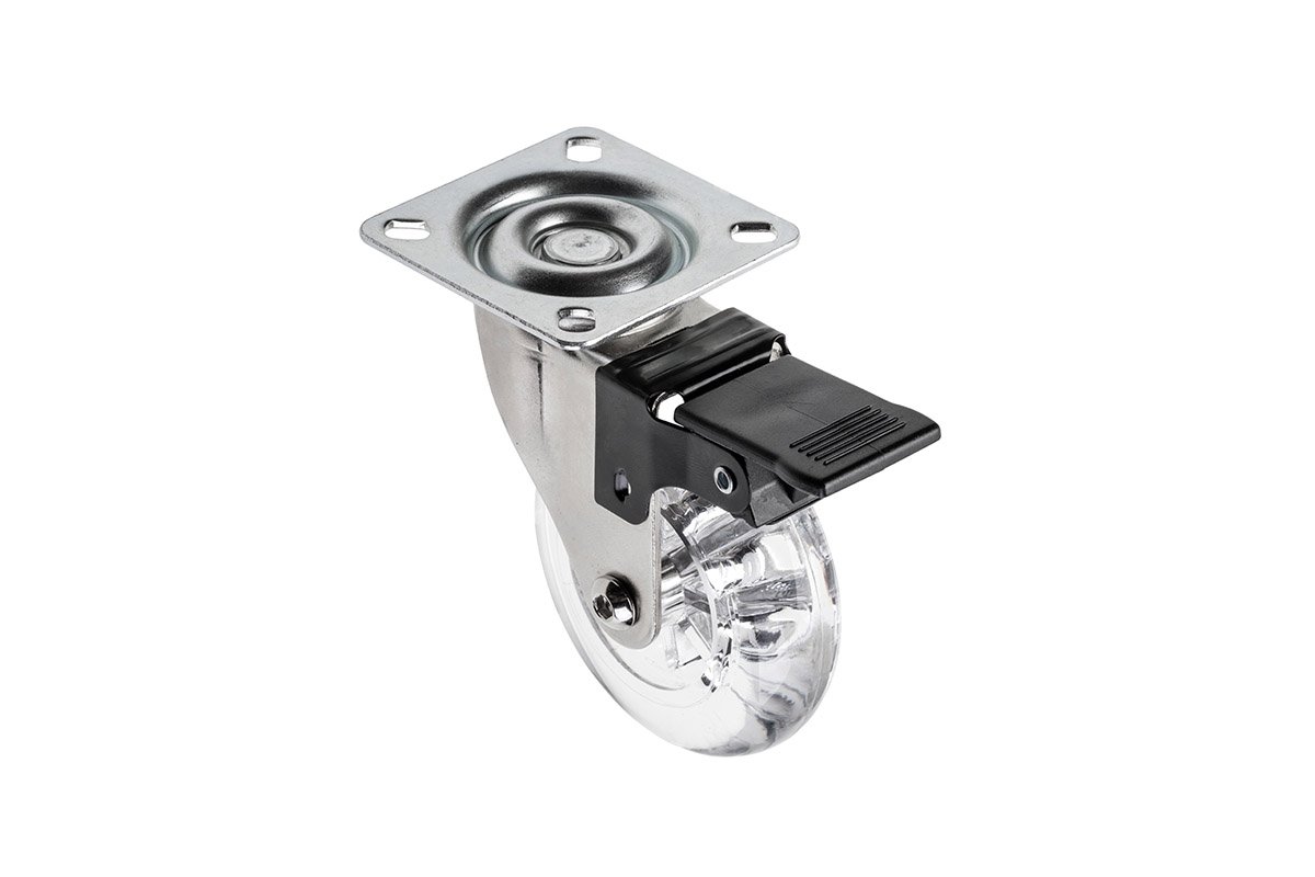 Kolečko nábytkové D75 transparentní černé s plotničkou