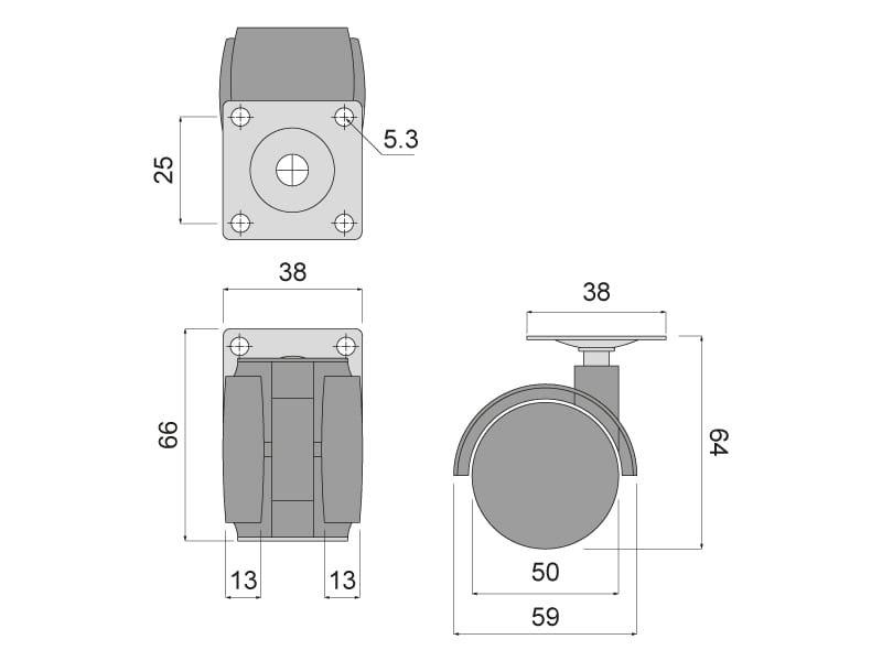 kolečko nábytkové ROL-N 50mm otočné s plotničkou