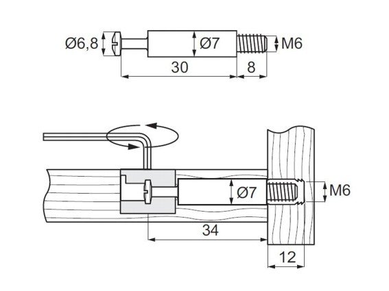 Kolík excentru 7x42 M6 zinek