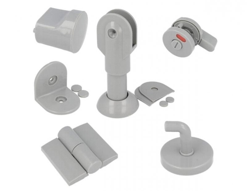 2ks úchytka, 1ks věšák, 1ks zámek, 12ks rohové konzoly s krytkou, 2ks závěs, 2ks nožka s krytkou |