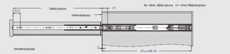 Kuličkový plnovýsuv zinkovaný, určený na bok zásuvky, úplné vysunutí zásuvky, tlumené dovírání. V sadě jsou dva kusy na jednu zásuvku.