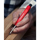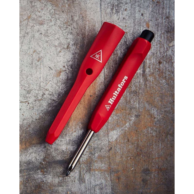 Tužka s mechanicky vysunovatelnou tuhou s ořezávátkem obsaženým v dobře se držícím pouzdře. Mechanickou tužku Hultafors lze snadno vyjmout z pouzdra, takže ji můžete mít při práci neustále po ruce. Tvar pouzdra zajišťuje, že tužka zůstane na místě, i když se hýbete. Ořezávátko se nachází v pouzdře tužky a je snadno přístupné. Díra ve spodní části pouzdra odvádí vlhkost a nečistotu, takže tužka samotná je chráněná, aby déle vydržela. Tuhy lze snadno měnit.