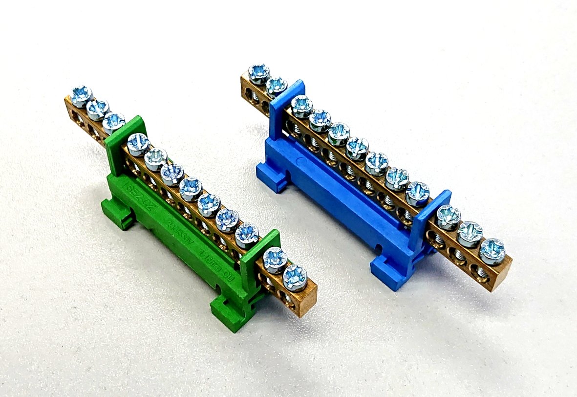 Zemnící a rozbočovací můstek, 12 pozic, zelený,400V/63A AC