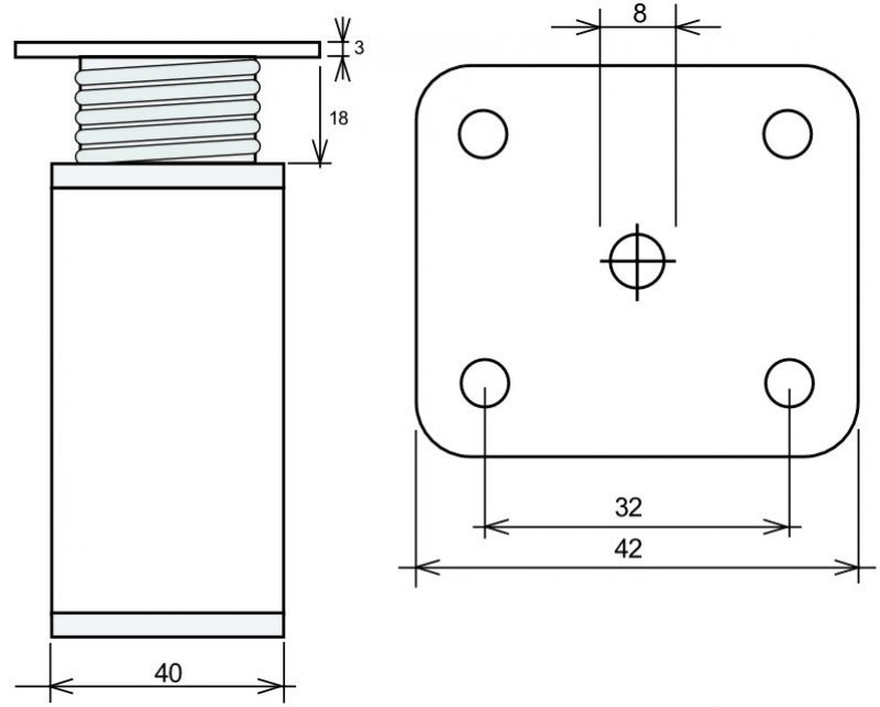 Nožka pohledová 60mm Rozměr.40 x 40mm Materiál hliník / plast Barva přírodní hliník