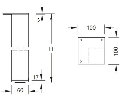 • Nožka hranatá BÍLÁ MATNÁ 60x60x120 s regulací