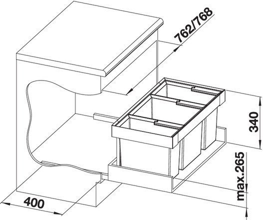 Odpadkový vestavěný koš s čelním výstupem, který přináší dokonalou kombinaci praktičnosti a moderního designu. S třemi nádobami o objemu 1x16, 1x19 a 1x30 litrů přičemž každá poskytuje dostatek místa pro vaše odpadky. Blanco Flexon II se vejde do skříňky o šířce 80 cm.