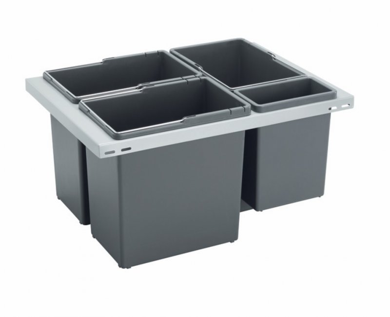 Odpadkový koš CUBE Basic 600, 3x12 l + 1x3,3 l, K60 - šedý plast