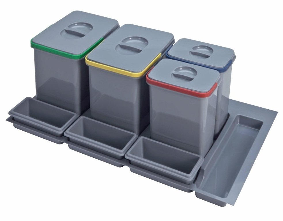Odpadkový koš do šuplíku 900, 2x15 l + 2x7 l, šedý plast