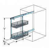 Plnovýsuvný dvojkoš Komfort boční s tlumeným dovřením Pravý, 350x495x585 mm, chr