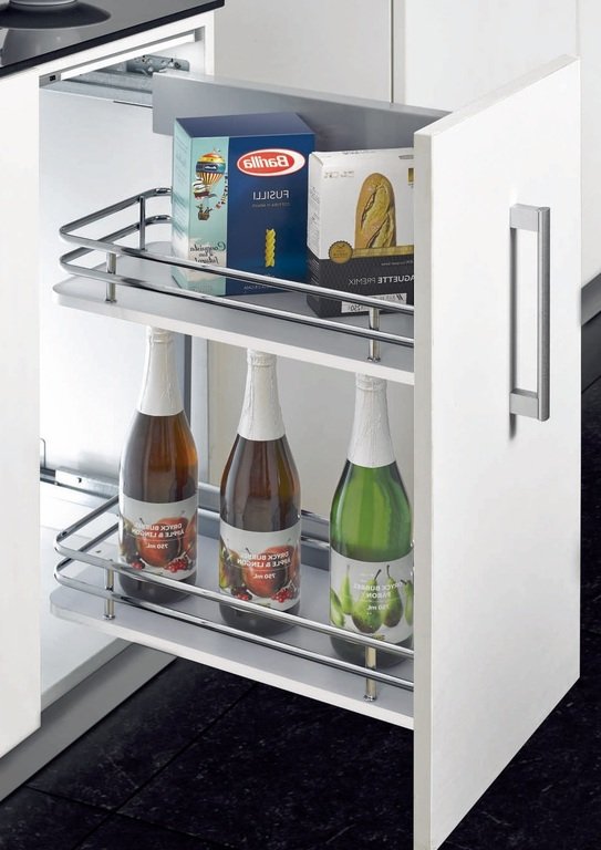 Materiál: ocel Povrchová úprava: chrom Maximální zatížení: 30 kg Složení setu: • 1× dvojkoš s plným dnem • 2× držák čela • 2× plnovýsuv s tlumeným dovřením • montážní set Montáž: do boku korpusu Minimální vnitřní hloubka korpusu: 490 mm Boční plnovýsuvný dvojkoš do korpusů 150 a 200 mm poskytuje přehledné uspořádání věcí v úzkých skříňkách s pohodlným přístupem Dveřní kování umožňuje nastavení dvířek ve všech směrech