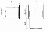 Materiál: ocel Povrchová úprava: chrom Maximální zatížení:30 kg Složení setu: • 1× koš s plným dnem • 2× plnovýsuv WIRELI s tlumeným dovřením • montážní set Montáž: do boků korpusu Minimální vnitřní hloubka korpusu: 490 mm Koš je určen pro montáž bez čelních dvířek i s čelními dvířky . Pro montáž čelních dvířek je potřeba objednat ke koši příslušné úchyty