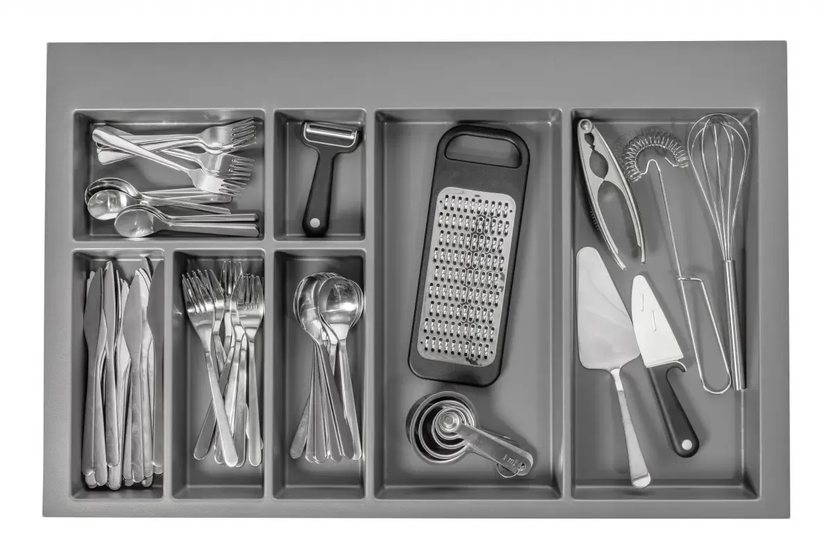 Zásuvkové vložky Axispace vyrobené z vysoce kvalitního plastu vám umožní efektivně spravovat interiéry kuchyňských zásuvek. Díky speciálním váhám máme možnost správně oddělit a uspořádat lžíce, nože, vidličky a další užitečné kuchyňské doplňky. Vizuální efekt však není jedinou výhodou tohoto produktu. Zásuvkové vložky jsou velmi prostorné a praktické a umožňují vám mít vše na dosah ruky, což je nesmírně důležité pro každého člověka, který se podílí na vaření. Nabídka zahrnuje pořadače různých velikostí (340-840 mm).