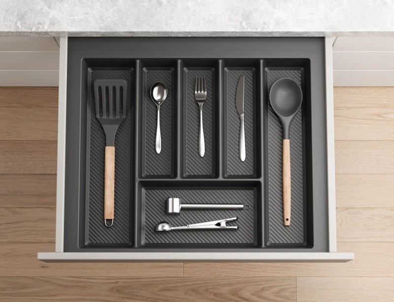 Díky dostatočně širokým okrajům vyplníte každou zásuvku až do šířky 900mm. Stačí si změřit vnitřní rozměr zásuvky a okraje odřezat podle vašich požadavků.